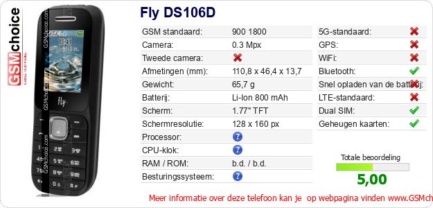 Gegevens van de telefoon Fly DS106D op jouw webpagina