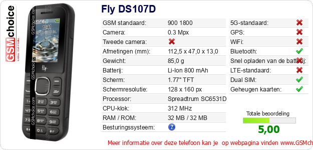 Gegevens van de telefoon Fly DS107D op jouw webpagina