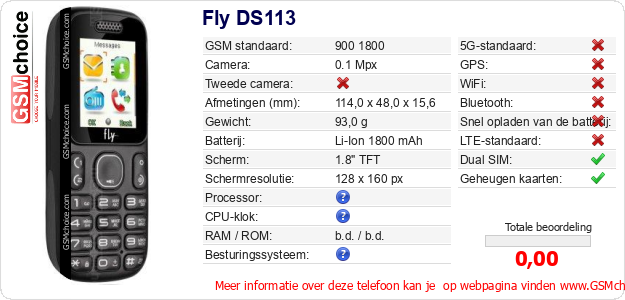 Gegevens van de telefoon Fly DS113 op jouw webpagina