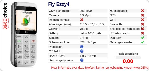 Gegevens van de telefoon Fly Ezzy4 op jouw webpagina