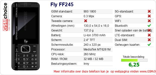 Gegevens van de telefoon Fly FF245 op jouw webpagina