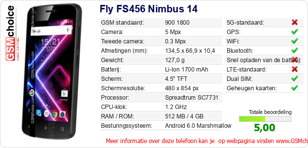 Gegevens van de telefoon Fly FS456 Nimbus 14 op jouw webpagina