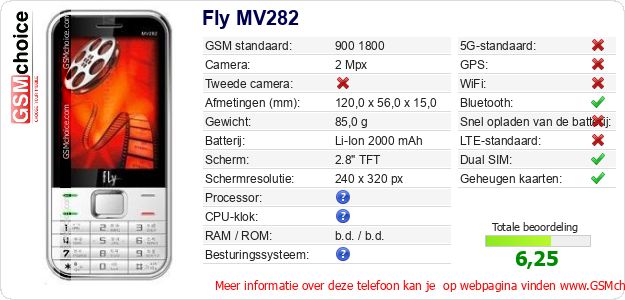 Gegevens van de telefoon Fly MV282 op jouw webpagina