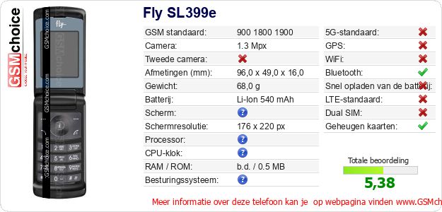 Gegevens van de telefoon Fly SL399e op jouw webpagina