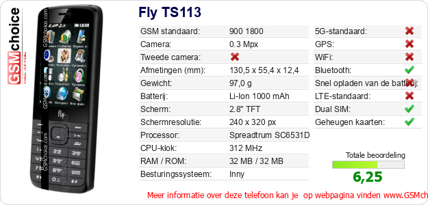 Gegevens van de telefoon Fly TS113 op jouw webpagina