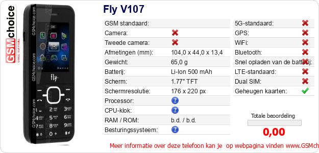 Gegevens van de telefoon Fly V107 op jouw webpagina
