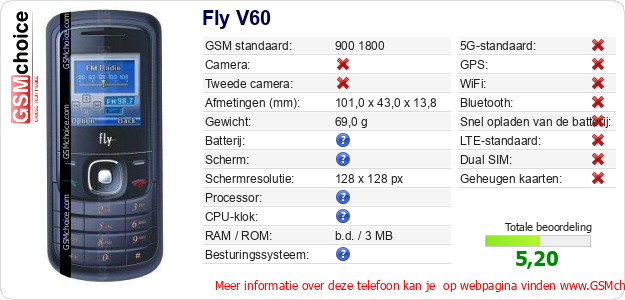 Gegevens van de telefoon Fly V60 op jouw webpagina