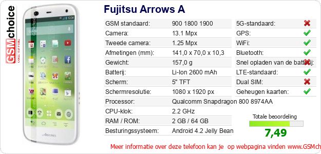 Gegevens van de telefoon Fujitsu Arrows A op jouw webpagina