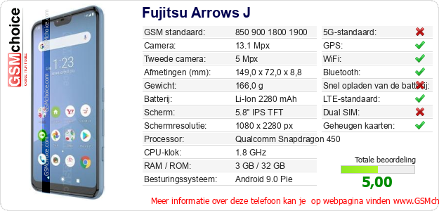 Gegevens van de telefoon Fujitsu Arrows J op jouw webpagina