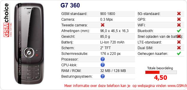 Gegevens van de telefoon G7 360 op jouw webpagina