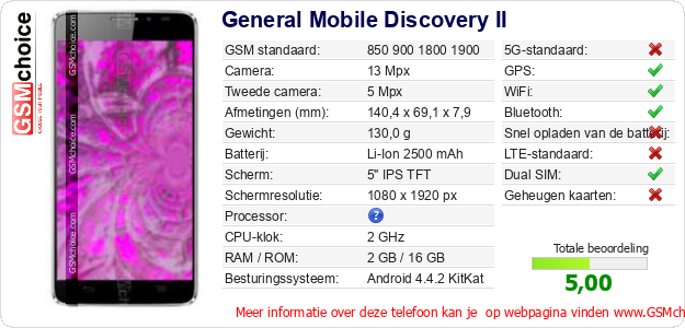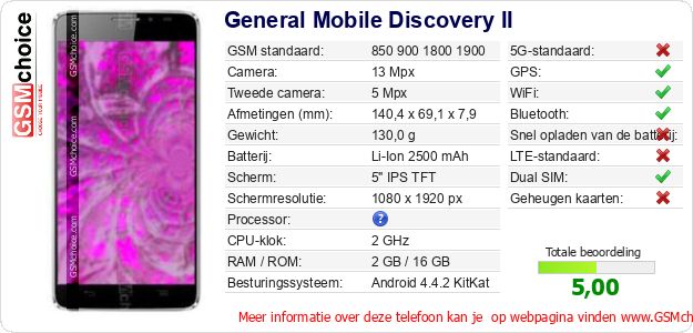 Gegevens van de telefoon General Mobile Discovery II op jouw webpagina
