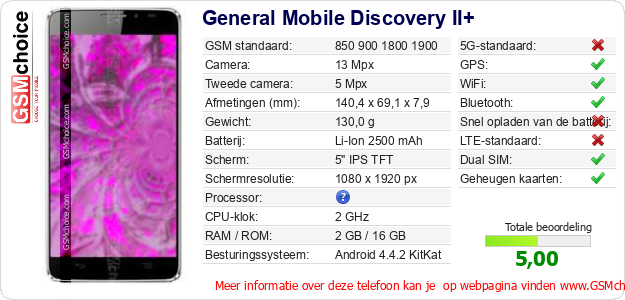 Gegevens van de telefoon General Mobile Discovery II+ op jouw webpagina