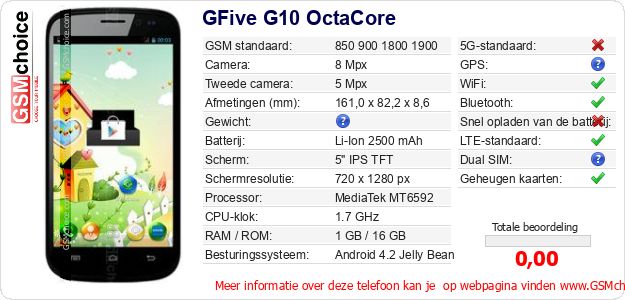 Gegevens van de telefoon GFive G10 OctaCore op jouw webpagina