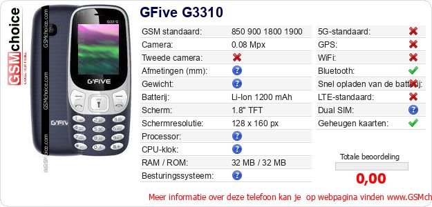 Gegevens van de telefoon GFive G3310 op jouw webpagina
