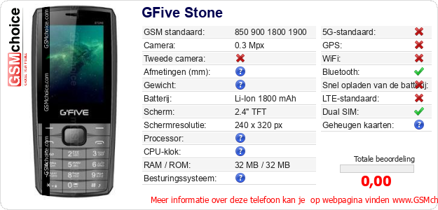Gegevens van de telefoon GFive Stone op jouw webpagina