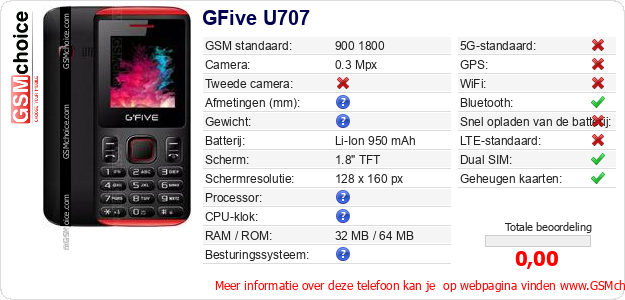 Gegevens van de telefoon GFive U707 op jouw webpagina
