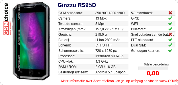 Gegevens van de telefoon Ginzzu RS95D op jouw webpagina