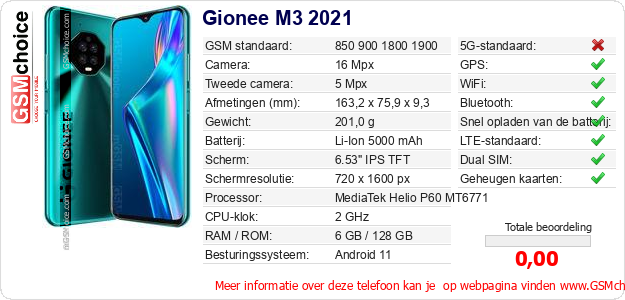 Verkoop je op ebay.com? Heb je jouw eigen webpagina? Als je de basisgegevens over Gionee M3 2021 ergens wilt publiceren, dan is het heel simpel. Het is voldoende om deze code te kopiëren en op jouw webpagina te plakken:Als je deze code plakt, dan wordt de onderstaande afbeelding getoond: