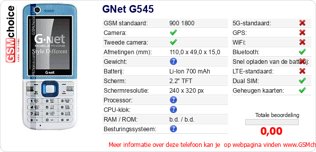 Gegevens van de telefoon GNet G545 op jouw webpagina