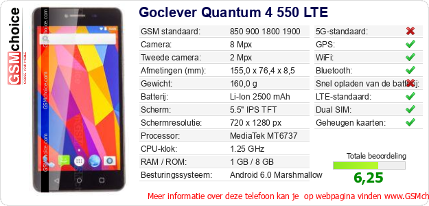 Gegevens van de telefoon Goclever Quantum 4 550 LTE op jouw webpagina