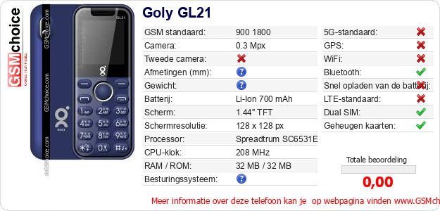 Gegevens van de telefoon Goly GL21 op jouw webpagina
