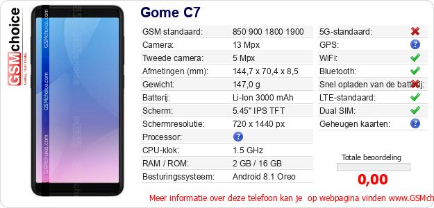 Gegevens van de telefoon Gome C7 op jouw webpagina