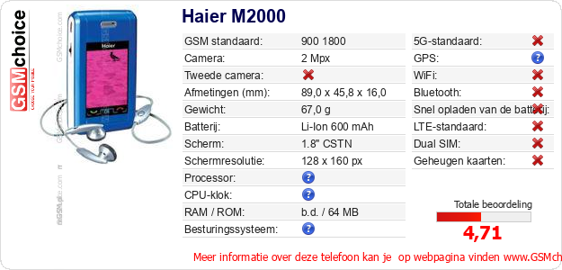 Gegevens van de telefoon Haier M2000 op jouw webpagina