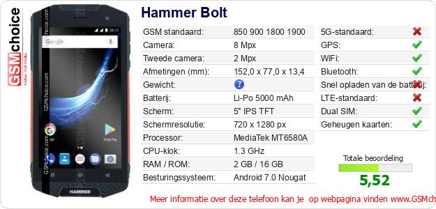 Gegevens van de telefoon Hammer Bolt op jouw webpagina