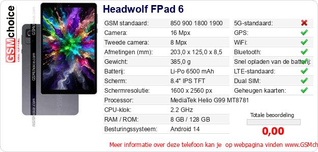Verkoop je op ebay.com? Heb je jouw eigen webpagina? Als je de basisgegevens over Headwolf FPad 6 ergens wilt publiceren, dan is het heel simpel. Het is voldoende om deze code te kopiëren en op jouw webpagina te plakken:Als je deze code plakt, dan wordt de onderstaande afbeelding getoond: