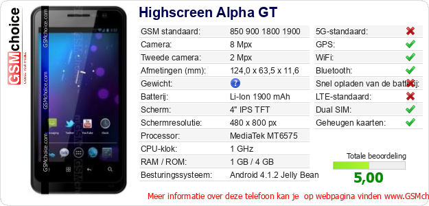 Gegevens van de telefoon Highscreen Alpha GT op jouw webpagina