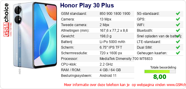 Gegevens van de telefoon Honor Play 30 Plus op jouw webpagina