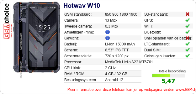 Gegevens van de telefoon Hotwav W10 op jouw webpagina