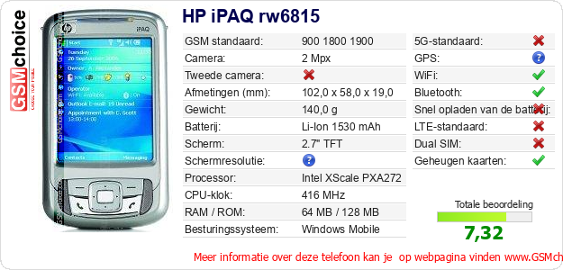 Gegevens van de telefoon HP iPAQ rw6815 op jouw webpagina