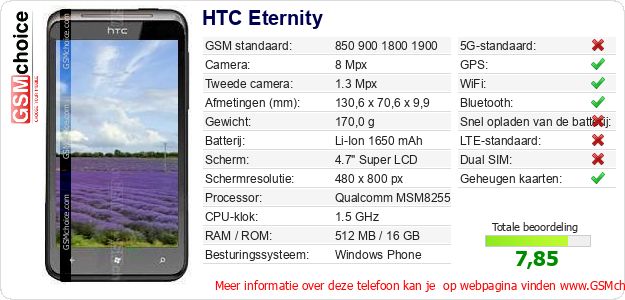 Gegevens van de telefoon HTC Eternity op jouw webpagina