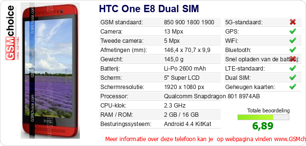 Gegevens van de telefoon HTC One E8 Dual SIM op jouw webpagina