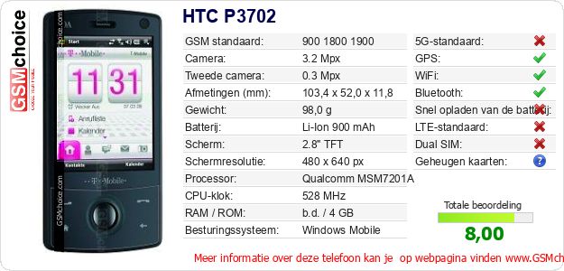 Gegevens van de telefoon HTC P3702 op jouw webpagina