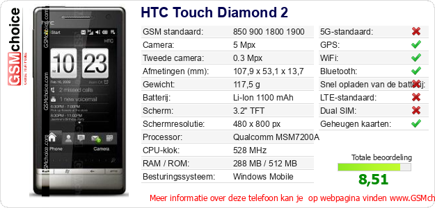 Gegevens van de telefoon HTC Touch Diamond 2 op jouw webpagina