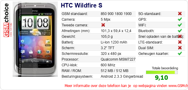 Gegevens van de telefoon HTC Wildfire S op jouw webpagina