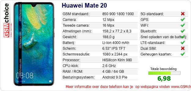 Gegevens van de telefoon Huawei Mate 20 op jouw webpagina