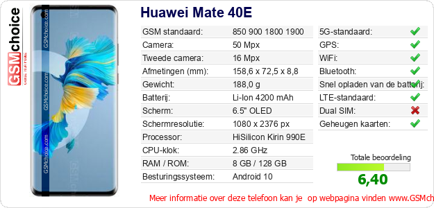 Gegevens van de telefoon Huawei Mate 40E op jouw webpagina