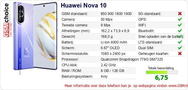 Gegevens van de telefoon Huawei Nova 10 op jouw webpagina