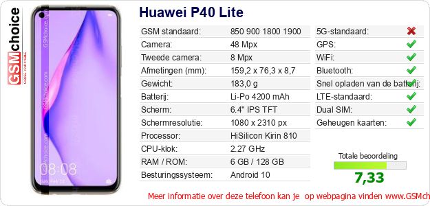 Gegevens van de telefoon Huawei P40 Lite op jouw webpagina