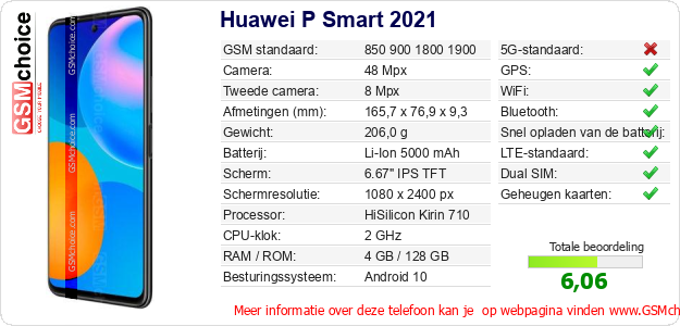 Gegevens van de telefoon Huawei P Smart 2021 op jouw webpagina