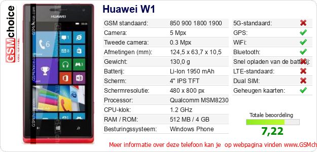 Gegevens van de telefoon Huawei W1 op jouw webpagina
