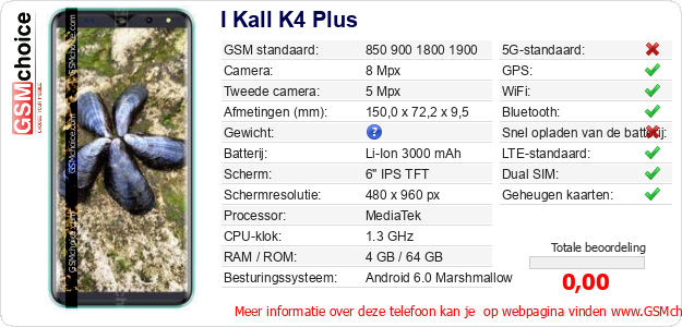 Gegevens van de telefoon I Kall K4 Plus op jouw webpagina