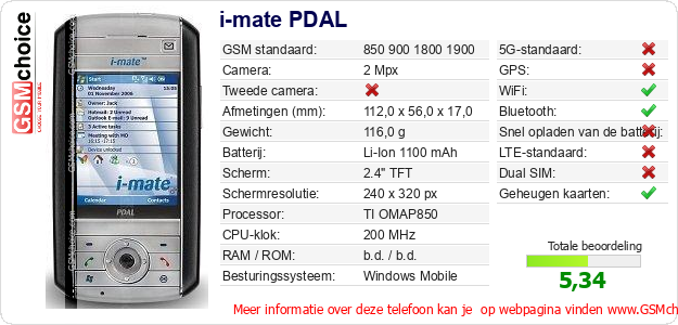 Gegevens van de telefoon i-mate PDAL op jouw webpagina