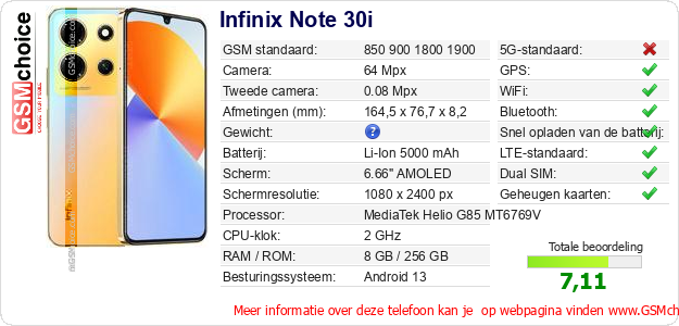 Gegevens van de telefoon Infinix Note 30i op jouw webpagina