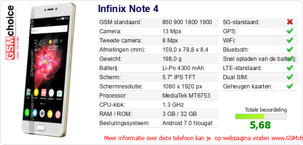 Gegevens van de telefoon Infinix Note 4 op jouw webpagina