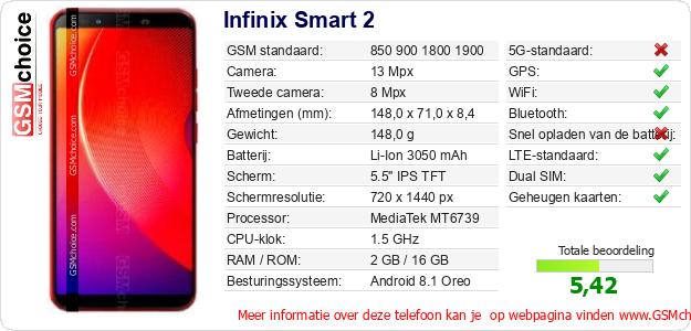 Gegevens van de telefoon Infinix Smart 2 op jouw webpagina