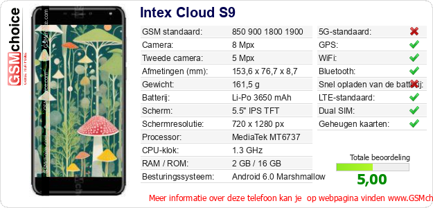 Gegevens van de telefoon Intex Cloud S9 op jouw webpagina
